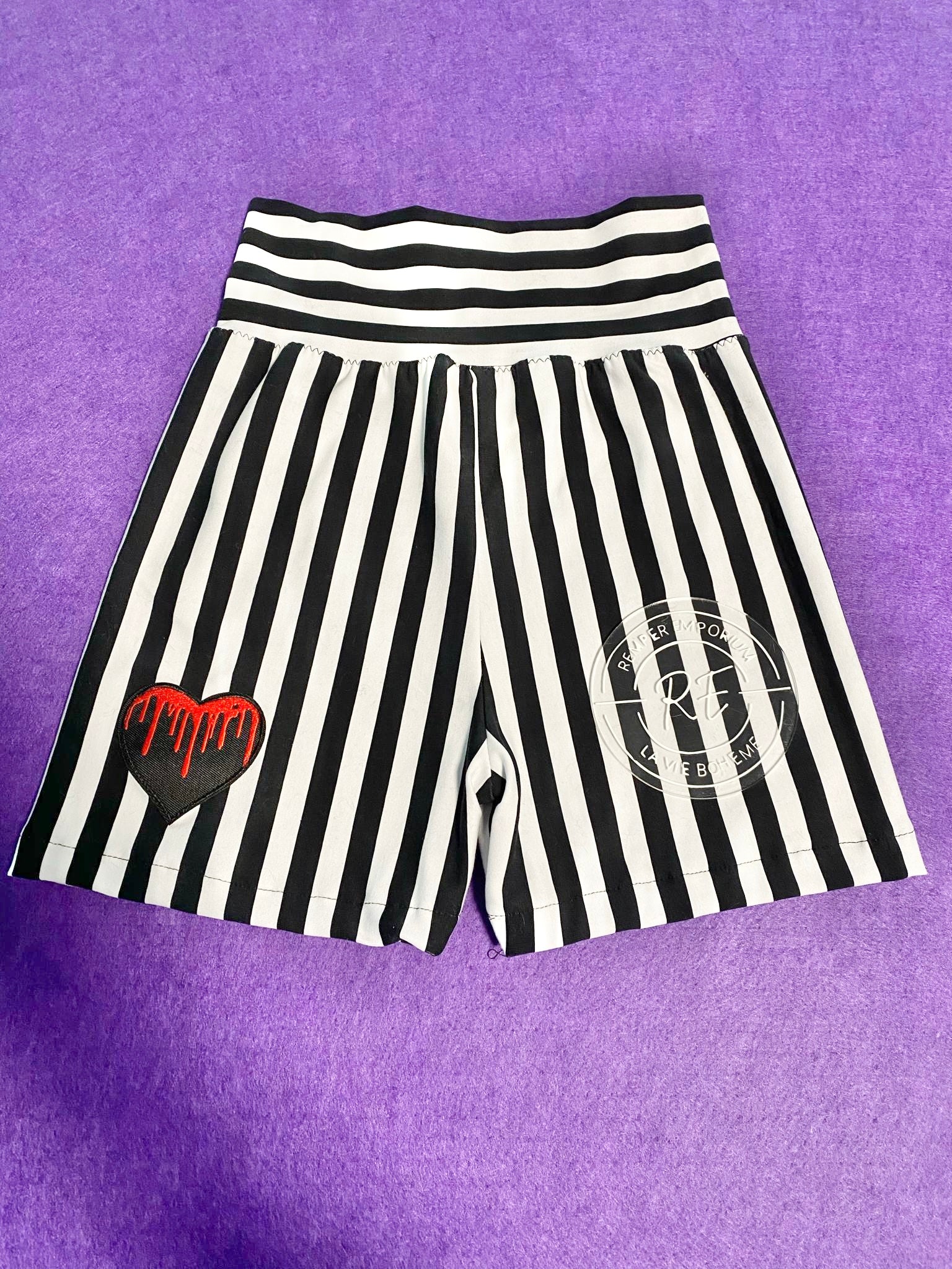 Mixing bold and playful, we have designed the Dorota Shorts with a vertical stripe for elongating effect whilst the high waistband features contrasting horizontal stripes for visual effect.