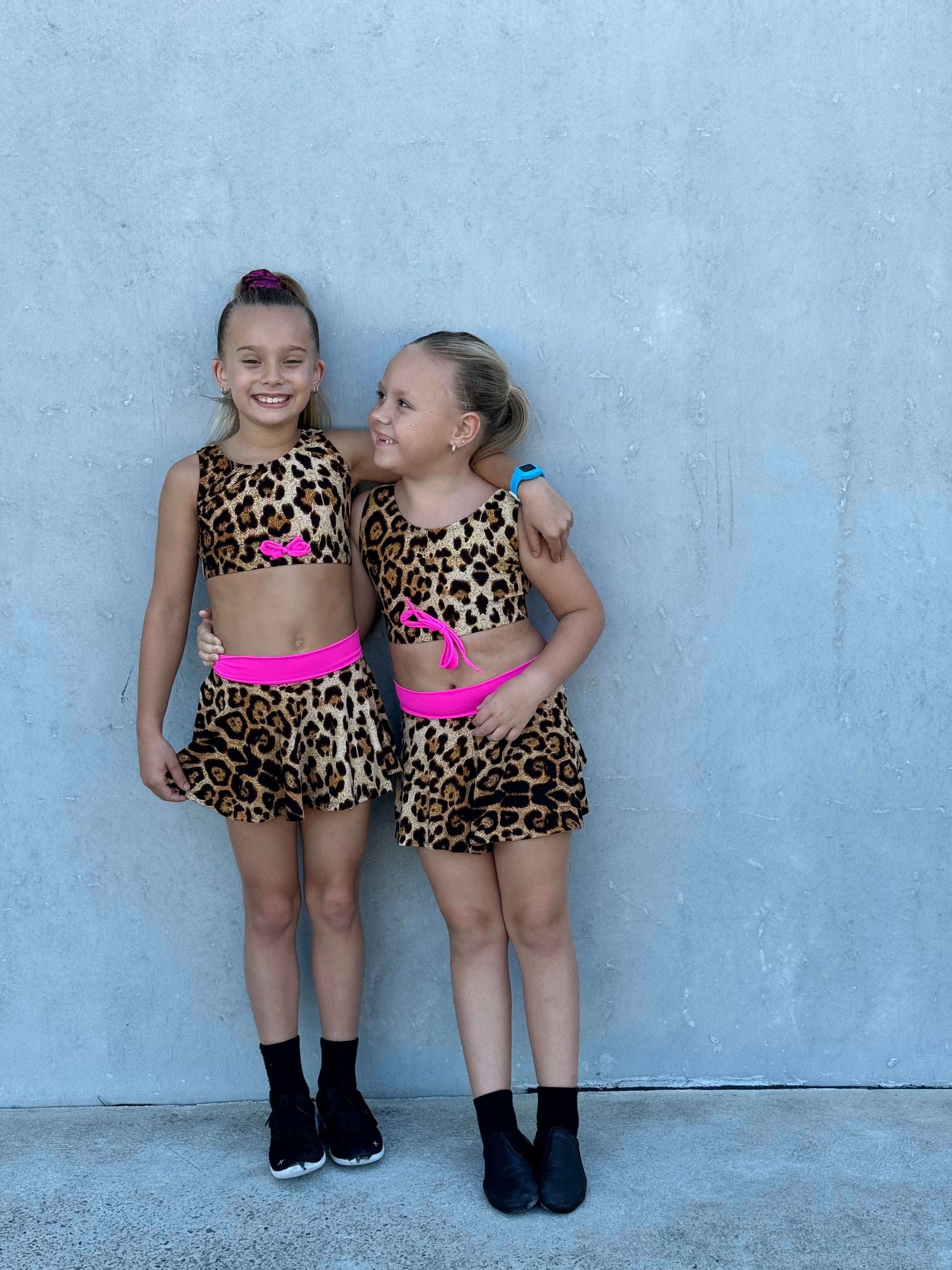 Featuring a cropped top complete with a bow, a twirly skirt with attached underpants, you are going to want this for all of your adventures!
